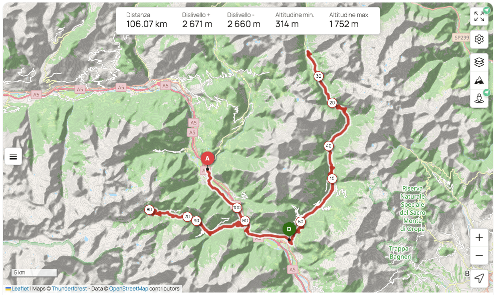 Percorso: Pont St. Martin – Gressoney-La-Trinitè (33 km), Bard (79 km), Chardonney (96 km) – Verrès.