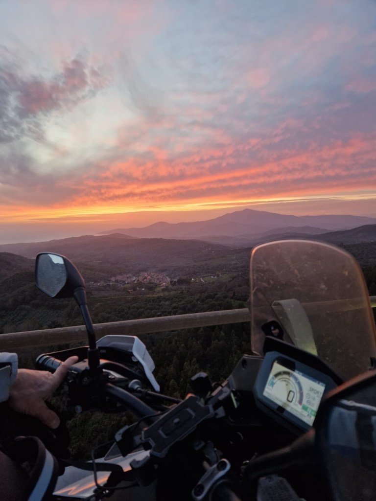 - Partenza per Tour “Più Pieghe” di circa 250km, con un 20% di strade bianche per visitare la Toscana più famosa. Soste foto numerose e soste caffè adatto a moto anche con gomme stradali e passeggero.